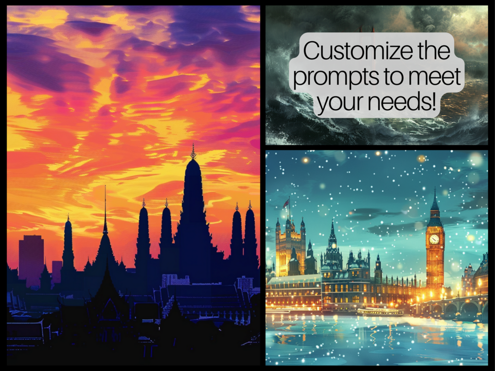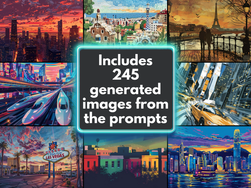 You'll get instant access to over 2000 AI Art Prompts to create stunning cityscape art!