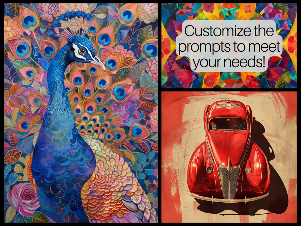 Our prompts have been meticulously researched and written to ensure you get the most out of your AI Art generators. They are suitable for a range of applications - from creating unique wall art to designing innovative fabric prints, album covers, and more.