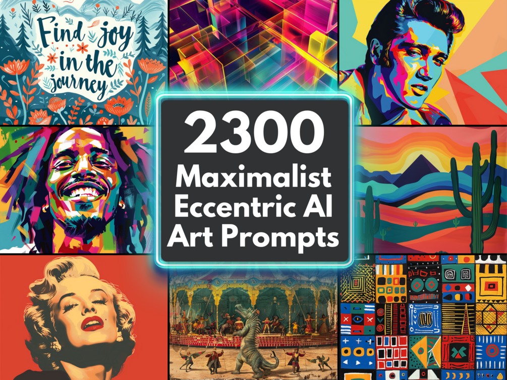 Don't miss this opportunity to elevate your art with the touch of maximalist elegance and the power of AI. Whether you're a seasoned artist or just starting out, our 2300 Maximalist and Eccentric AI Art Prompts collection is the perfect tool to spark your creativity and bring your artistic dreams to life.
